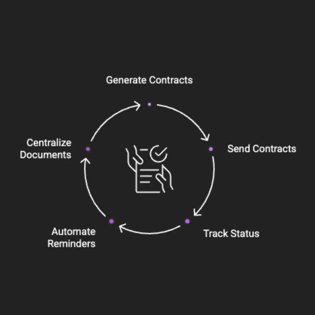 Auto-generate, send, and track contracts right inside your CRM. No more DocuSign fees, no more chasing signatures.