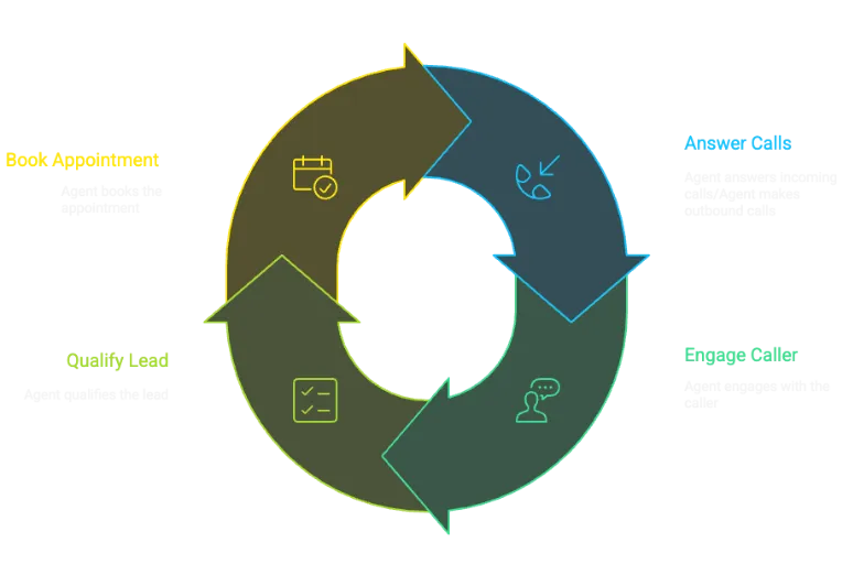 Our new AI Voice Agent ensures that never happens again. Whether a motivated seller calls in or your system triggers an outbound call, the agent answers, engages, qualifies, and books the appointment — 24/7.