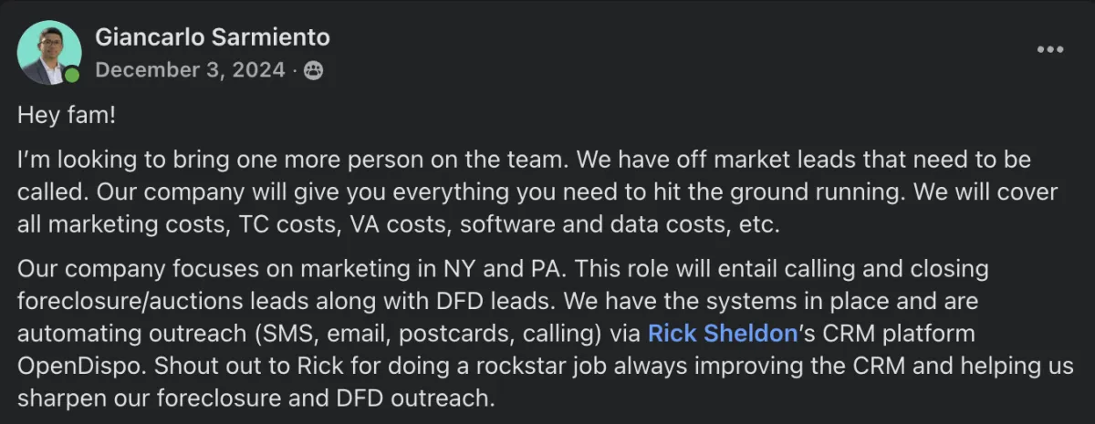 "Open Dispo's CRM has truly changed our business operations"